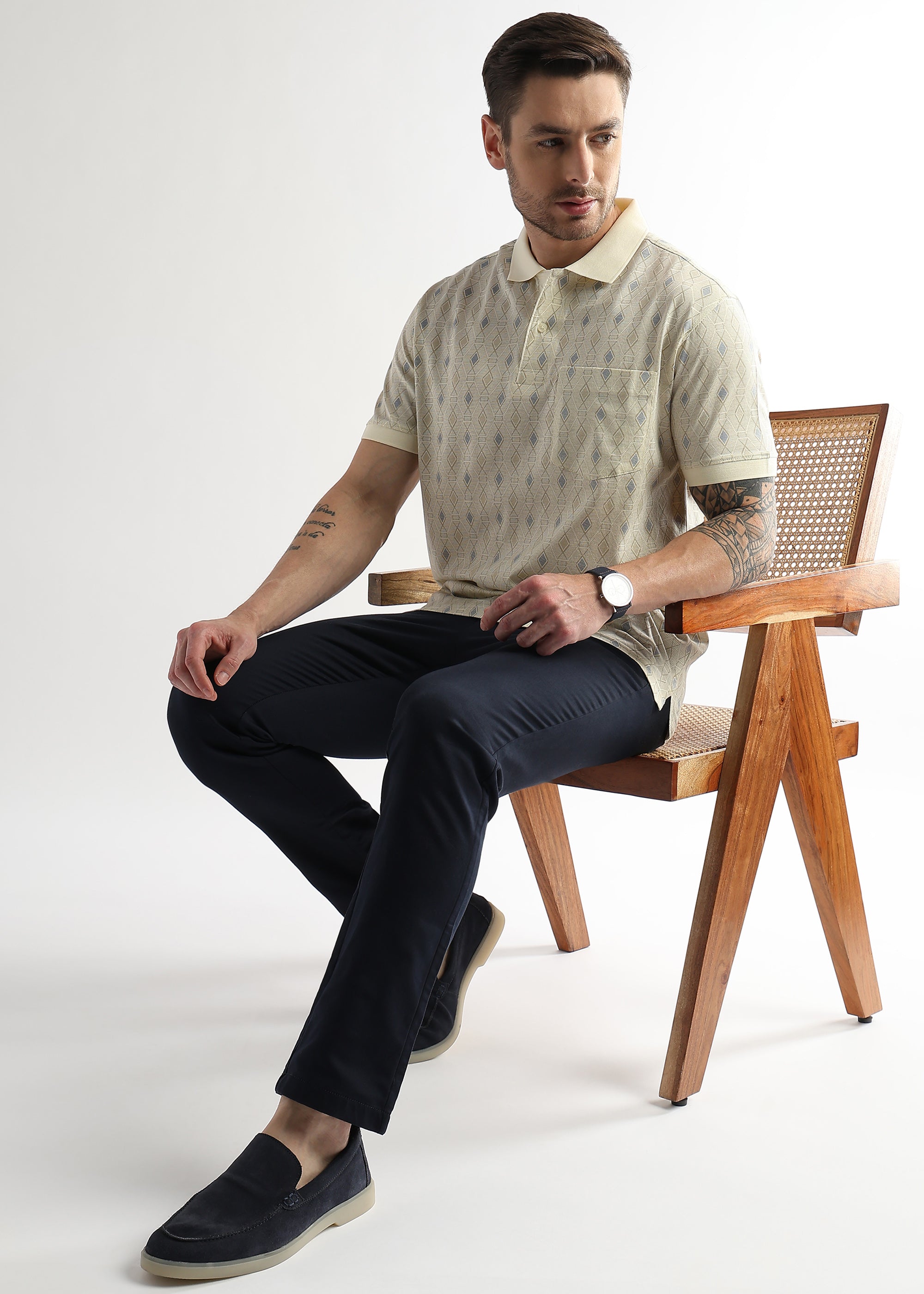 Afterglow White Endless Rhombus Print Mercerized Polo