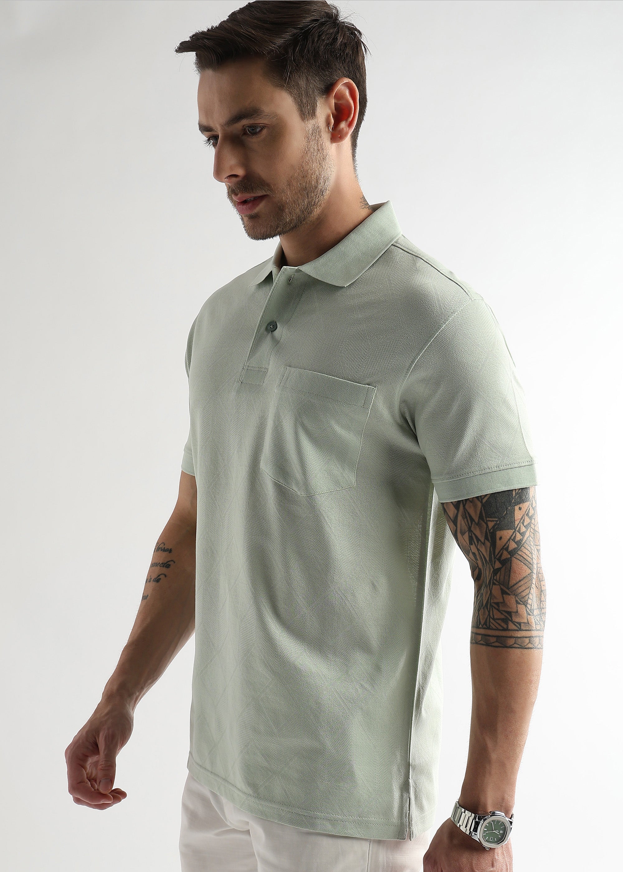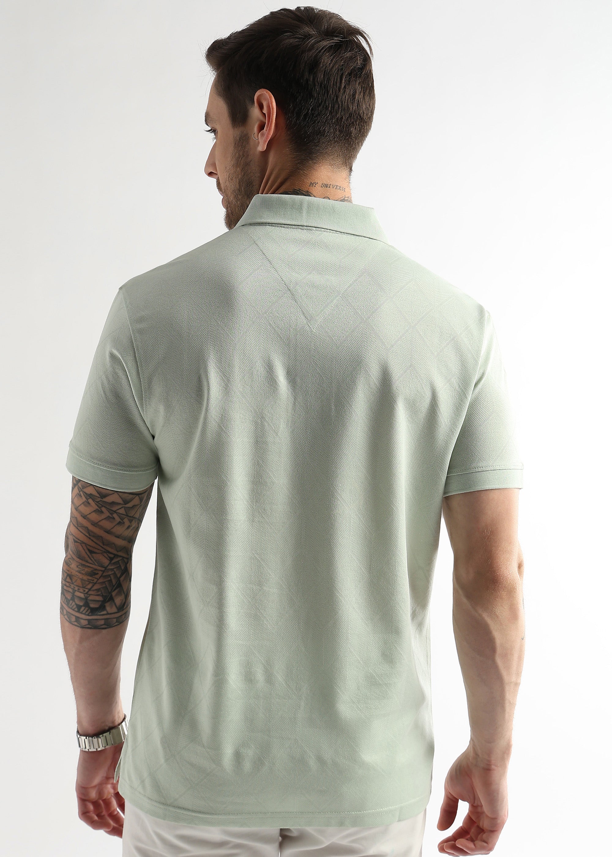 Fairest Jade Cube Knit Jacquard Mercerized Polo