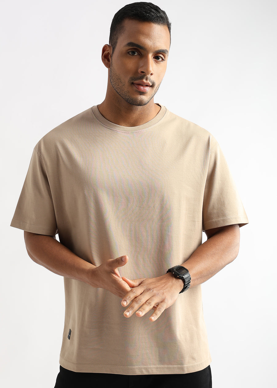 Irish Cream Solid Oversized T-Shirt