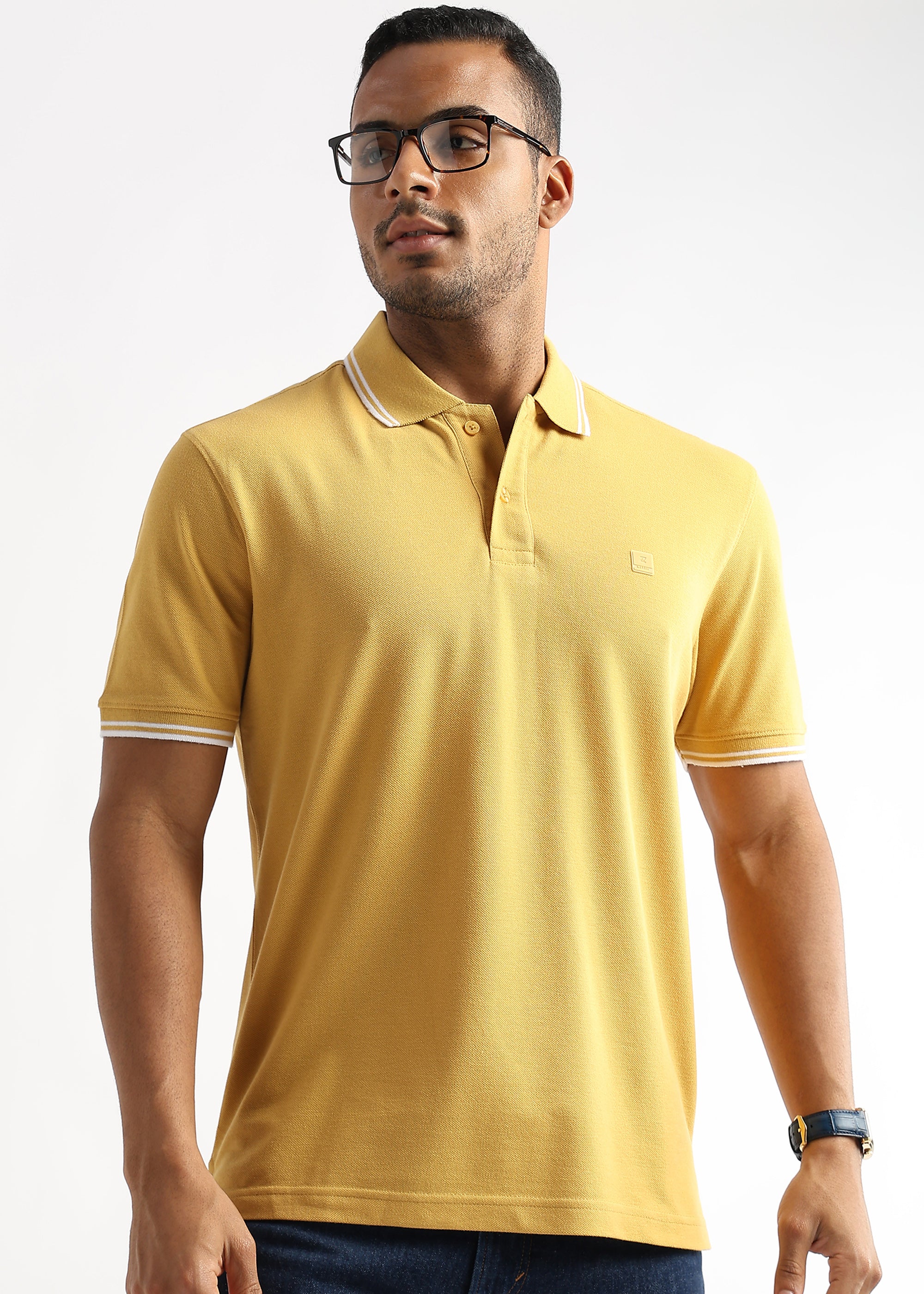 Ochre Yellow Solid Polo T-Shirt