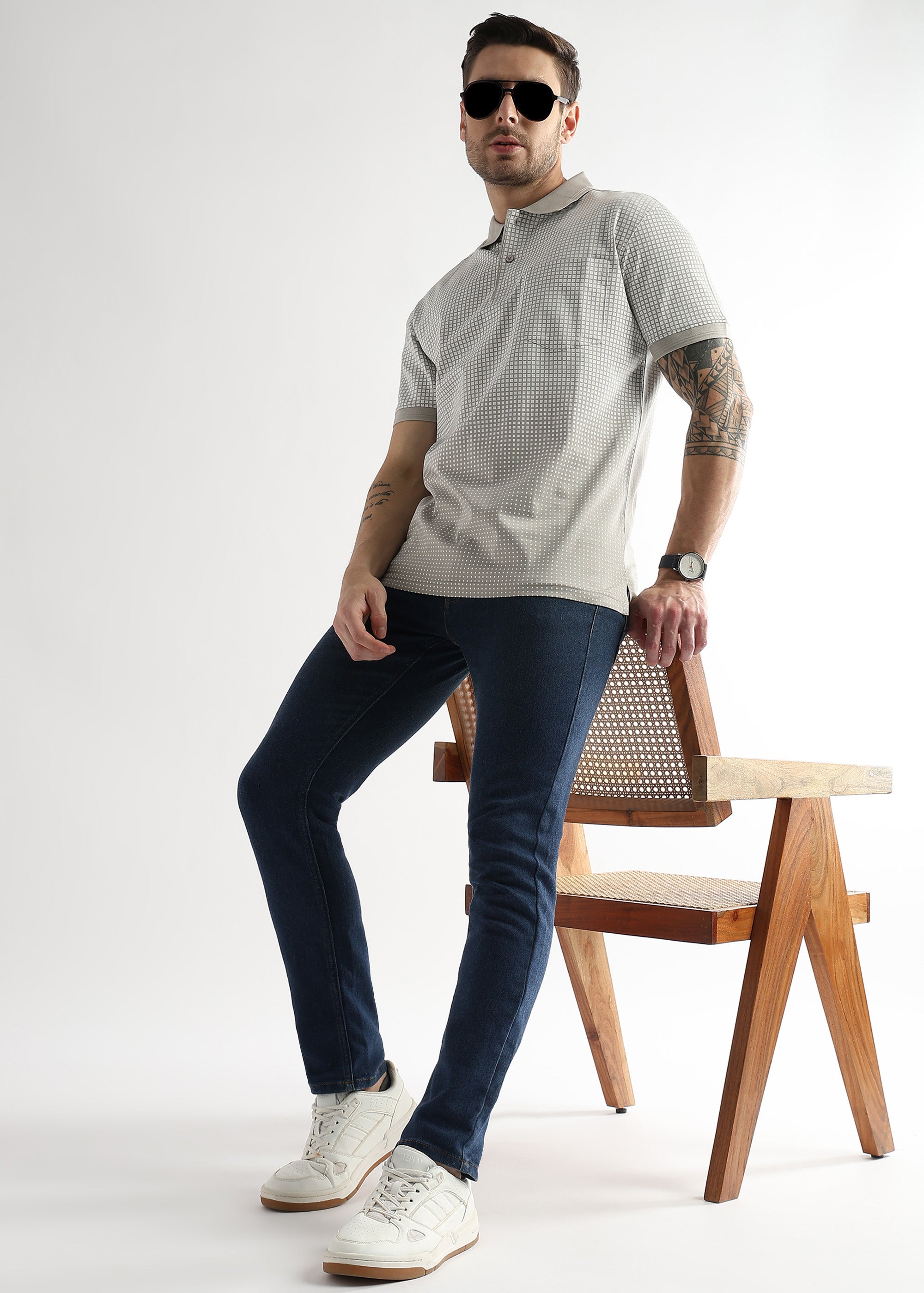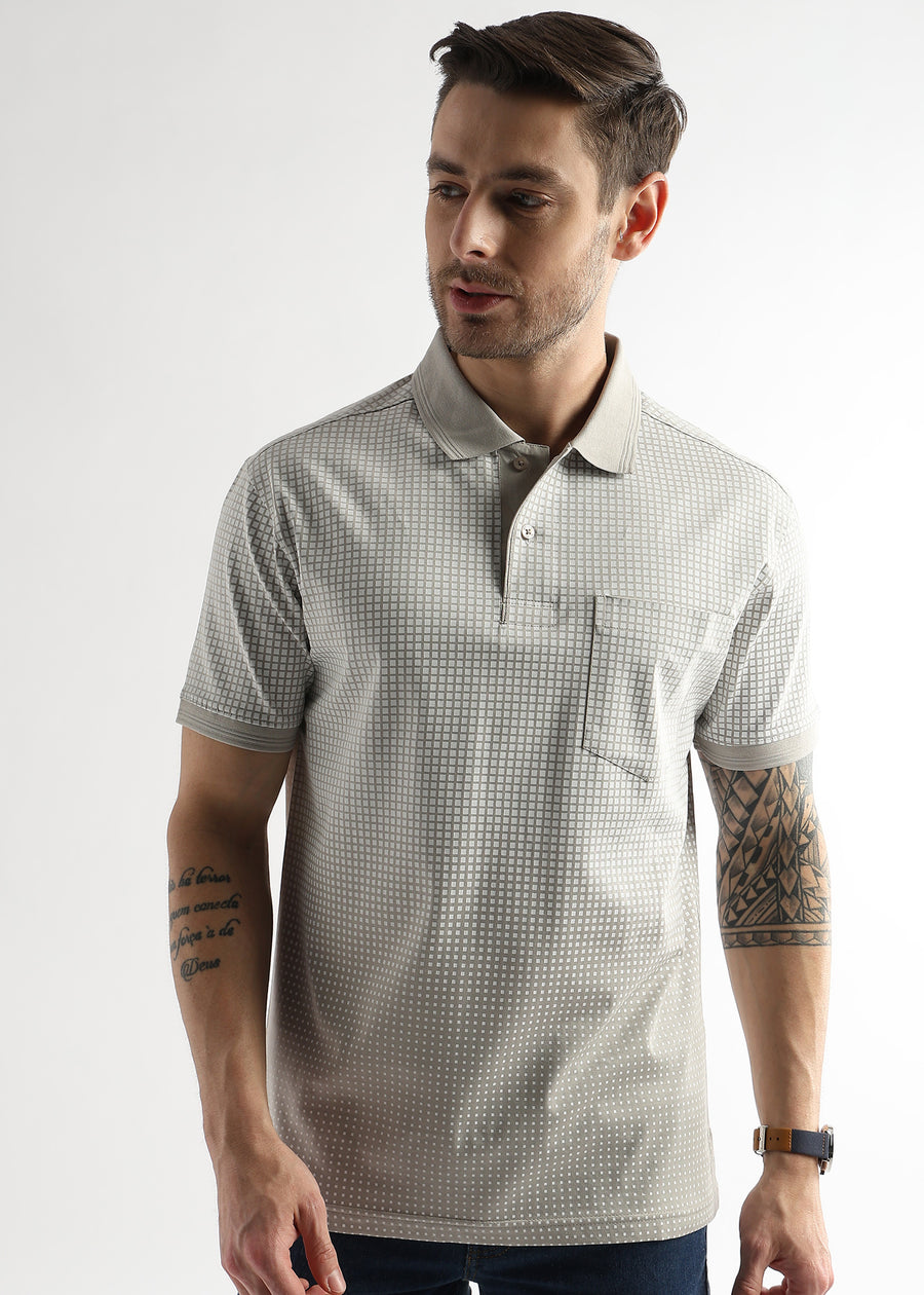 Pussywillow Gray Dissolve Print Mercerized Polo