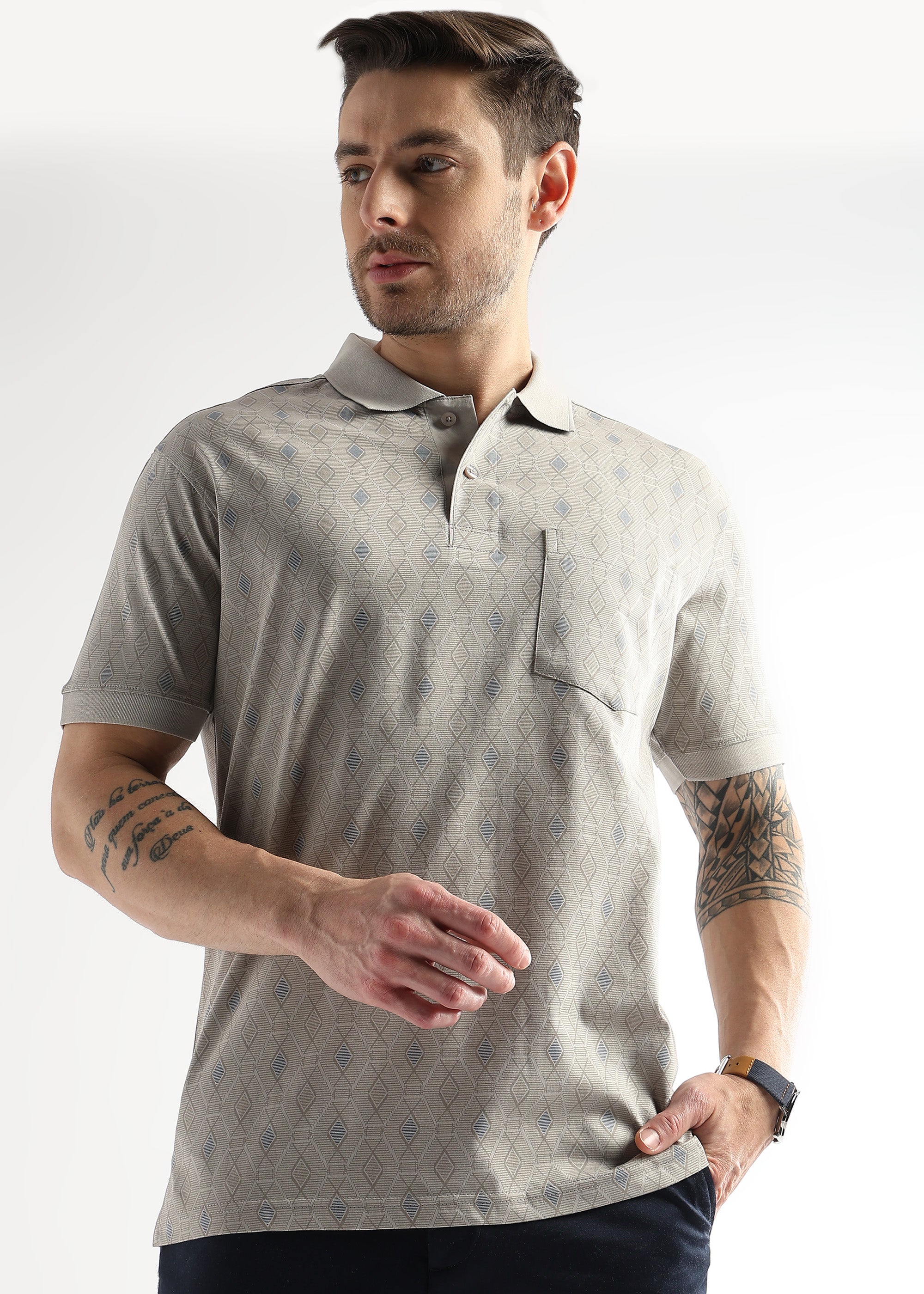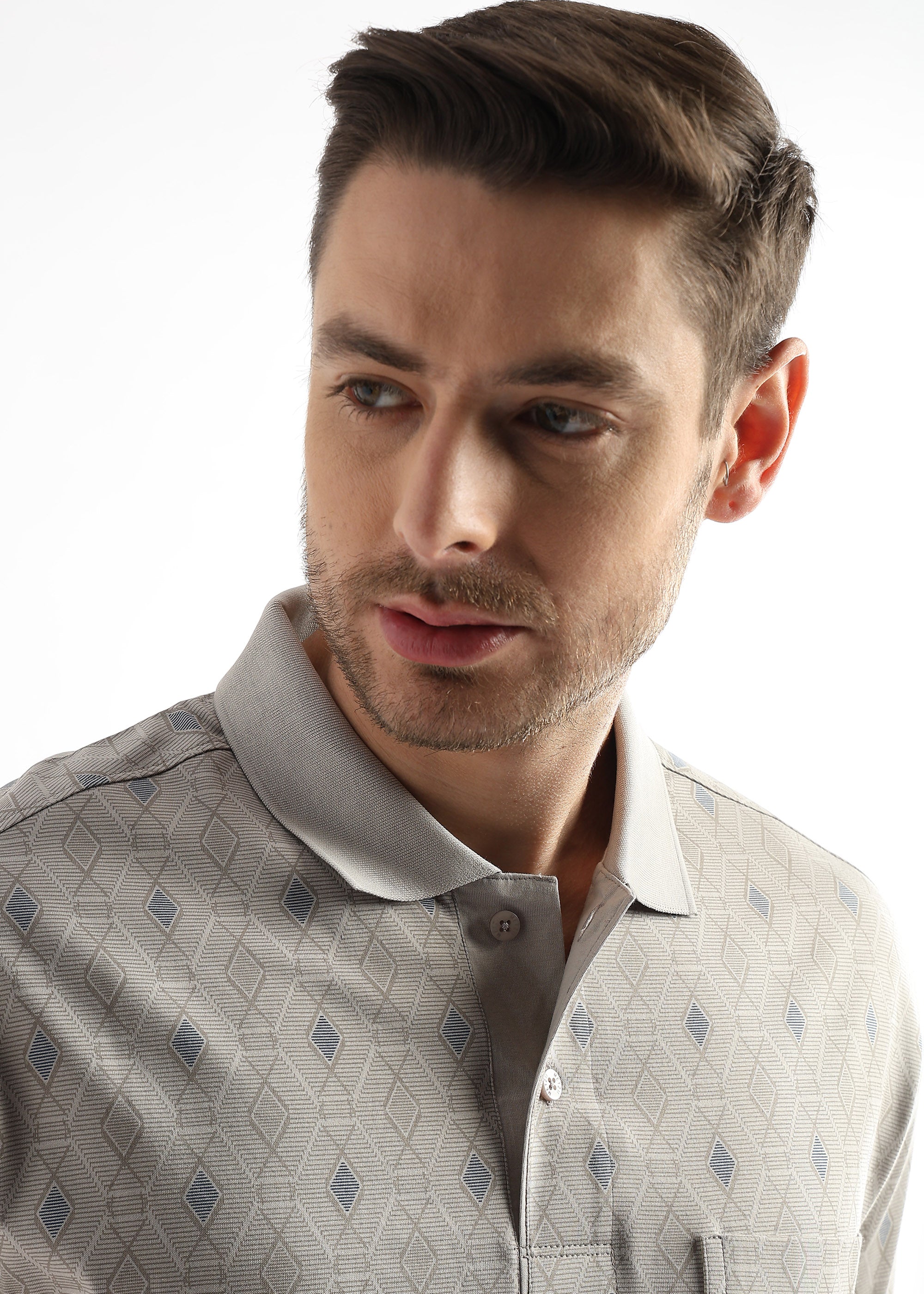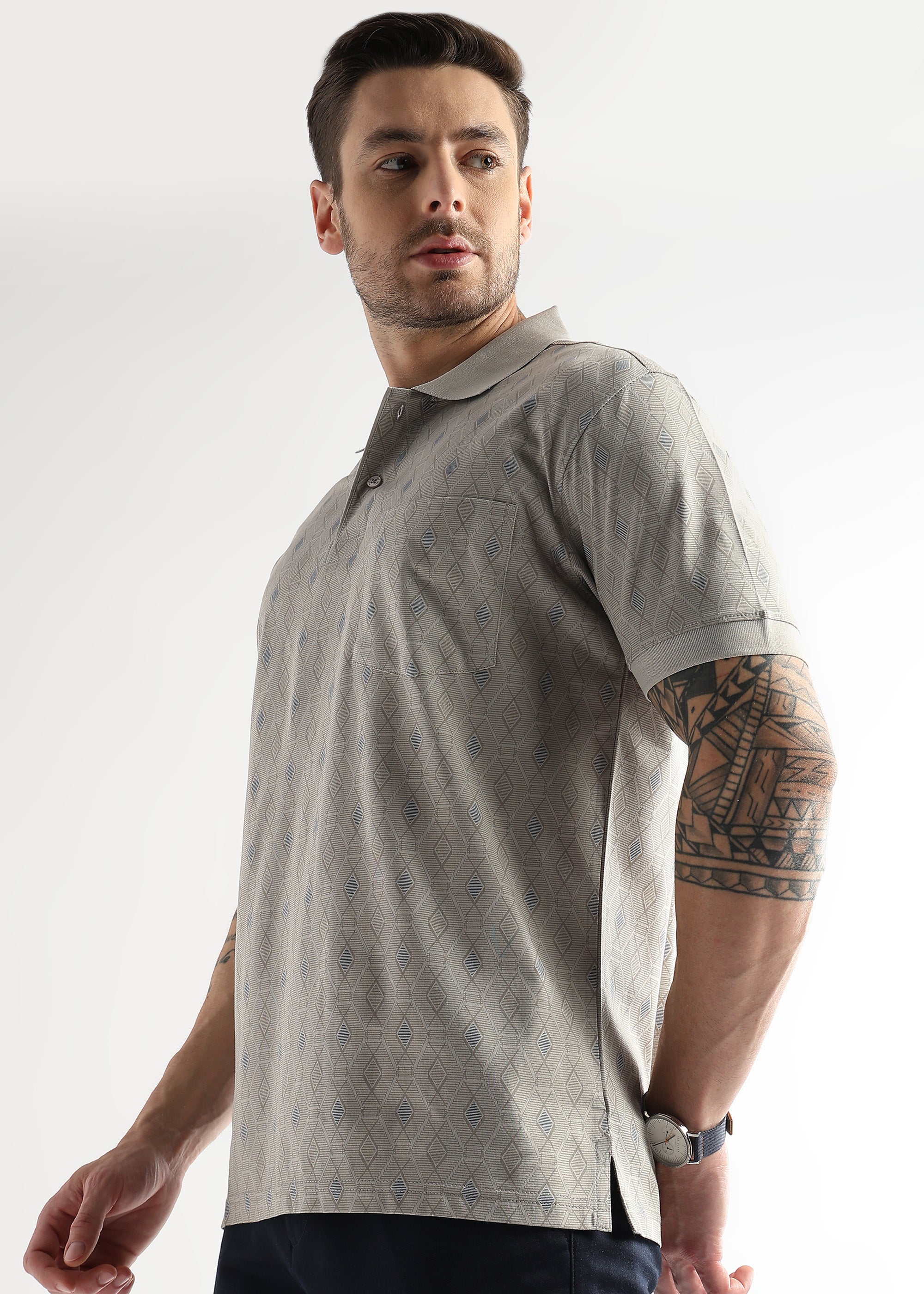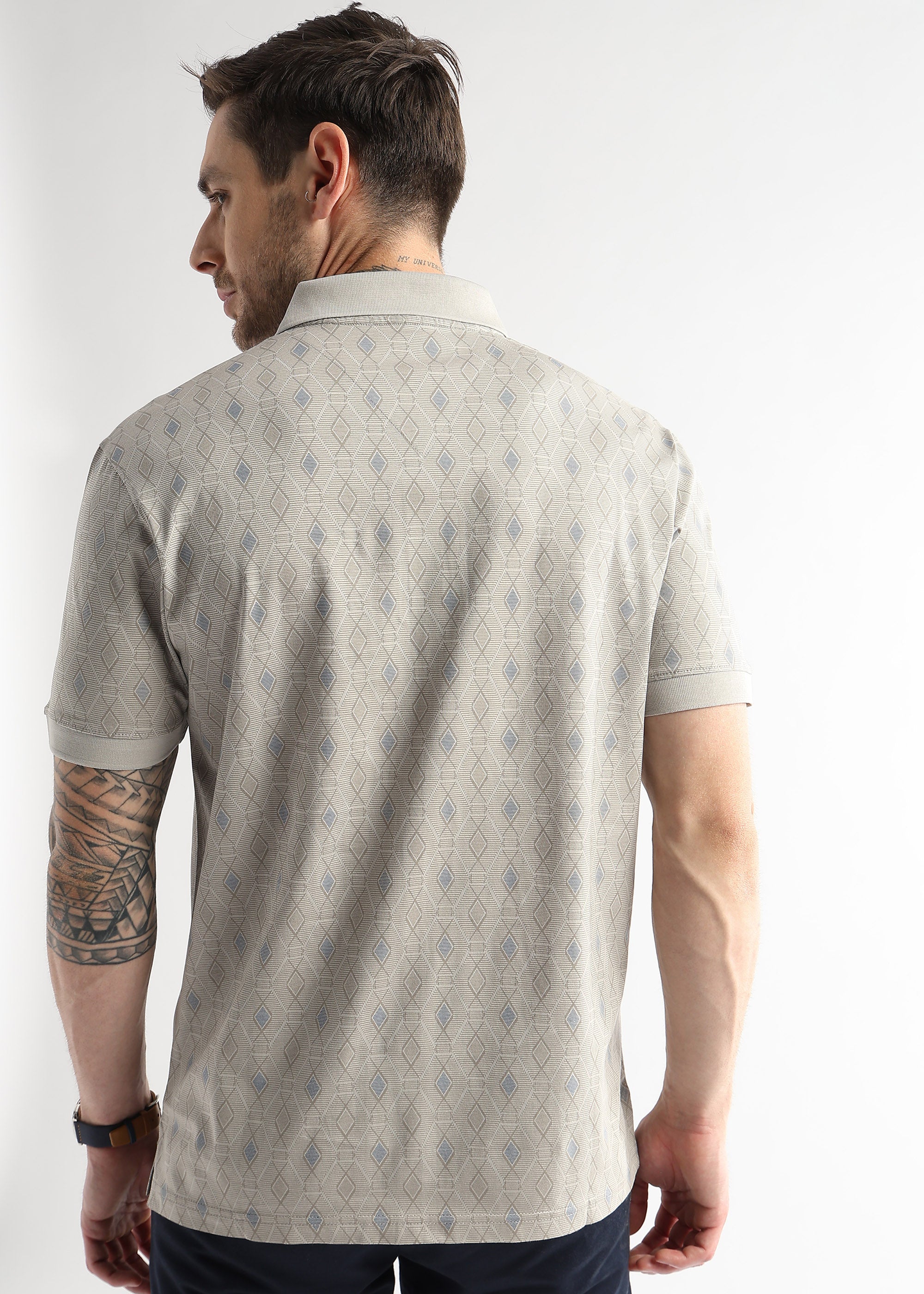 Pussywillow Gray Endless Rhombus Print Mercerized Polo