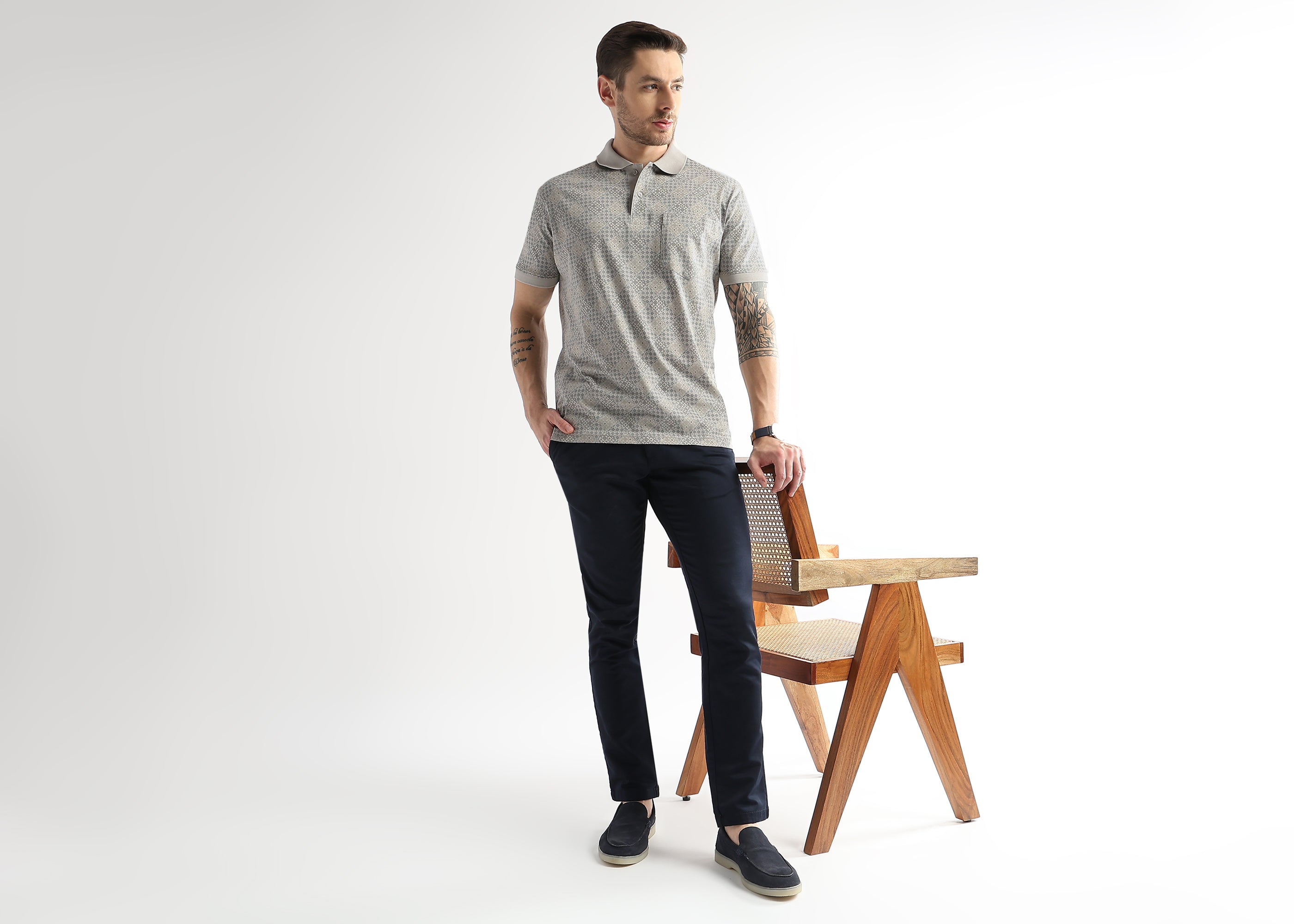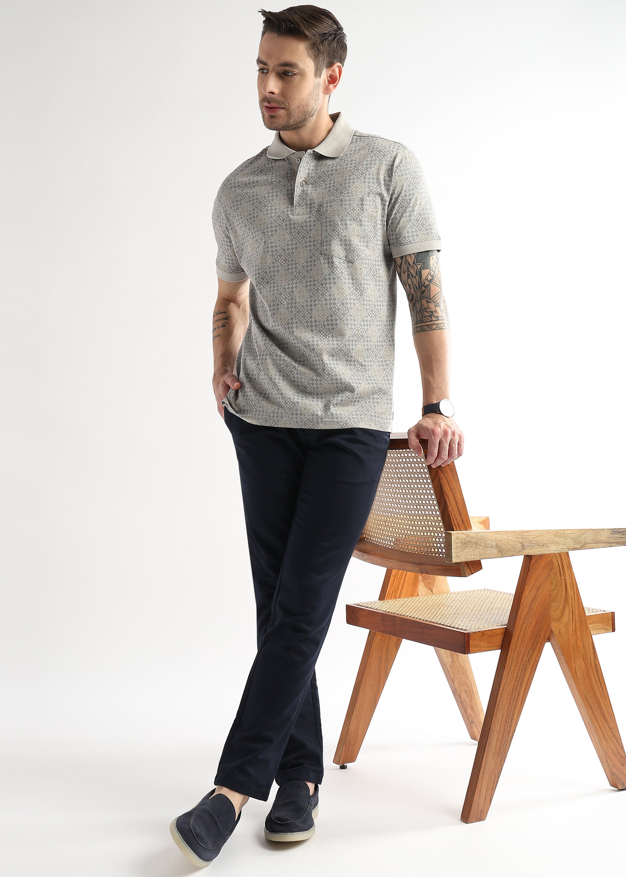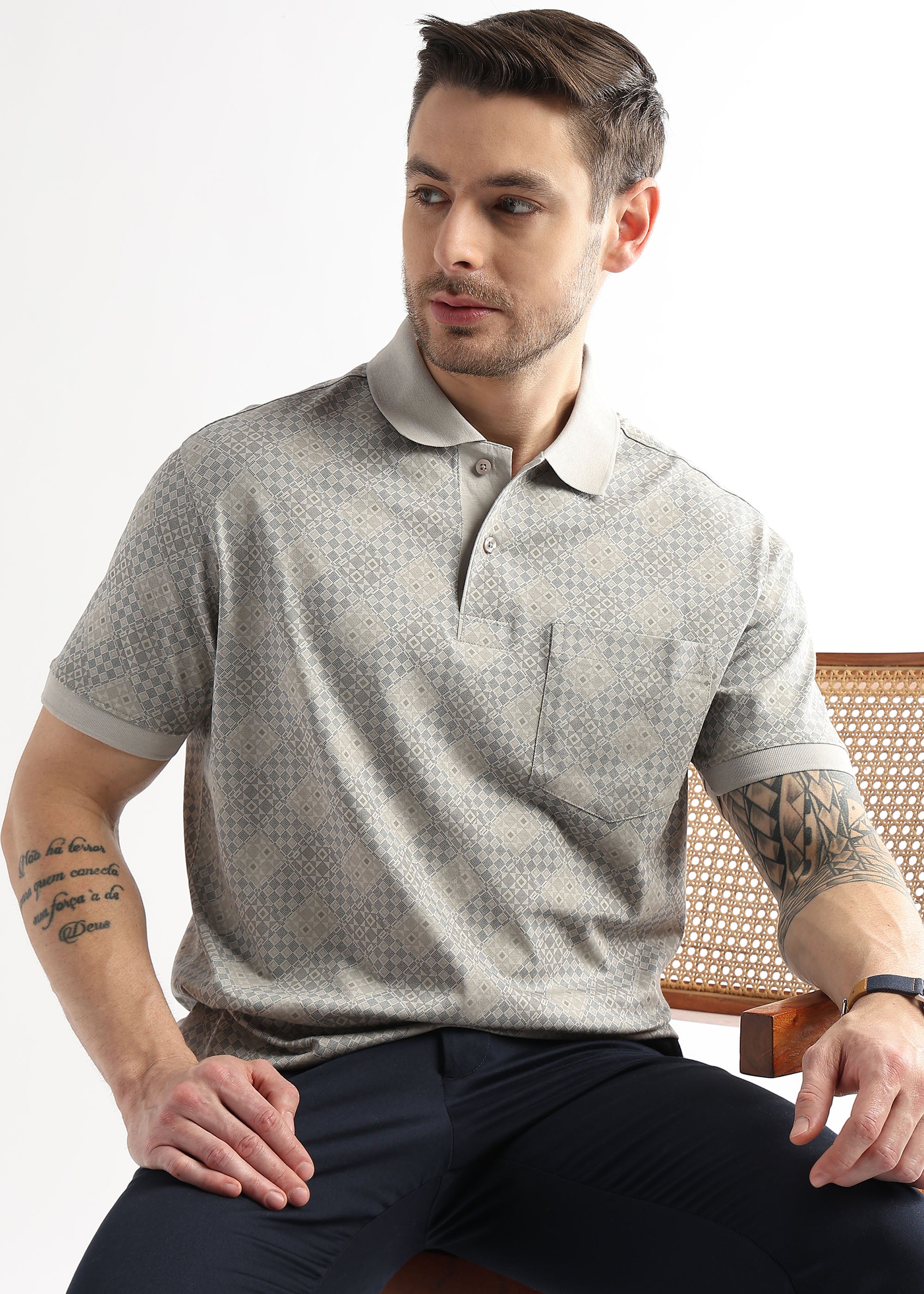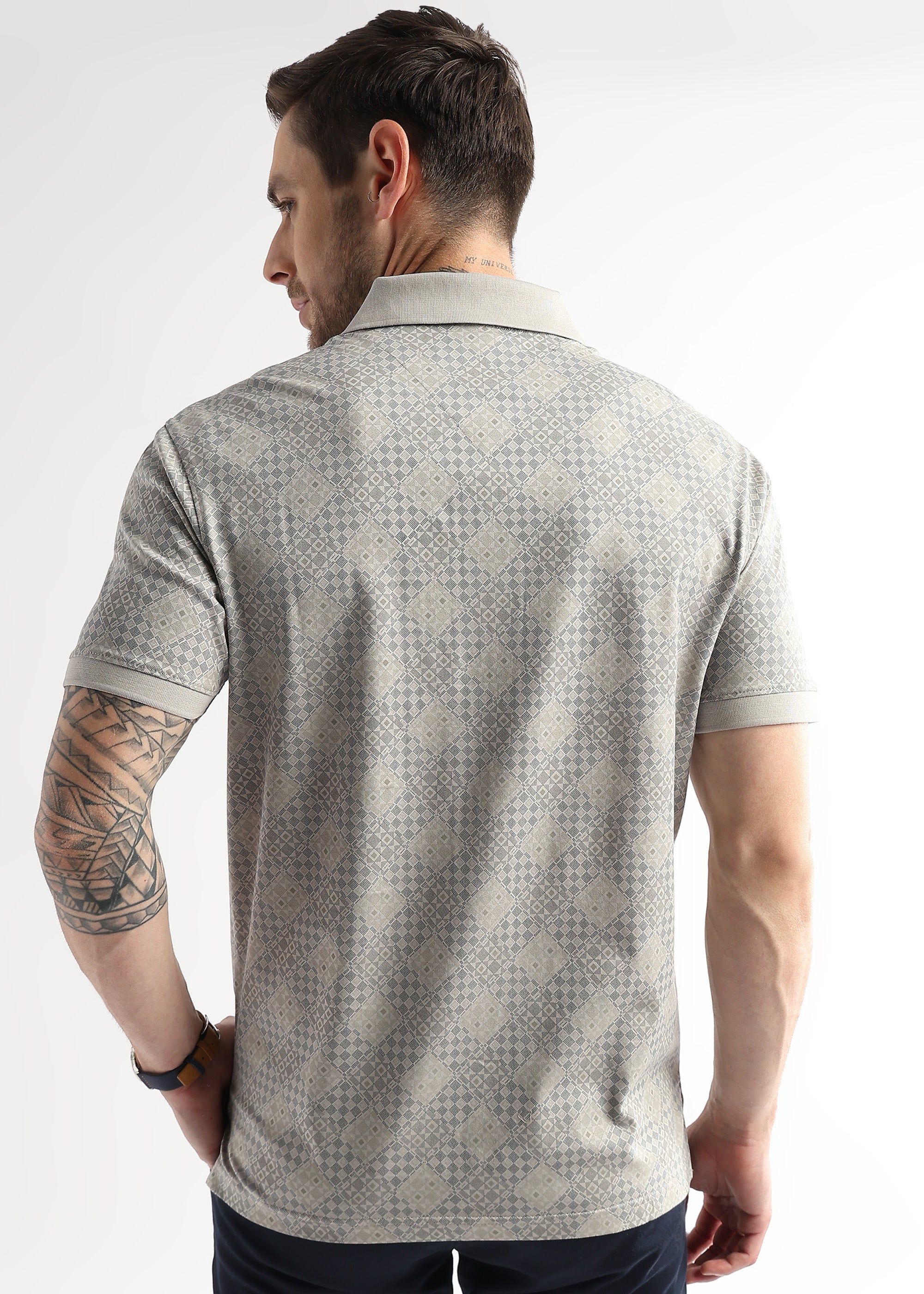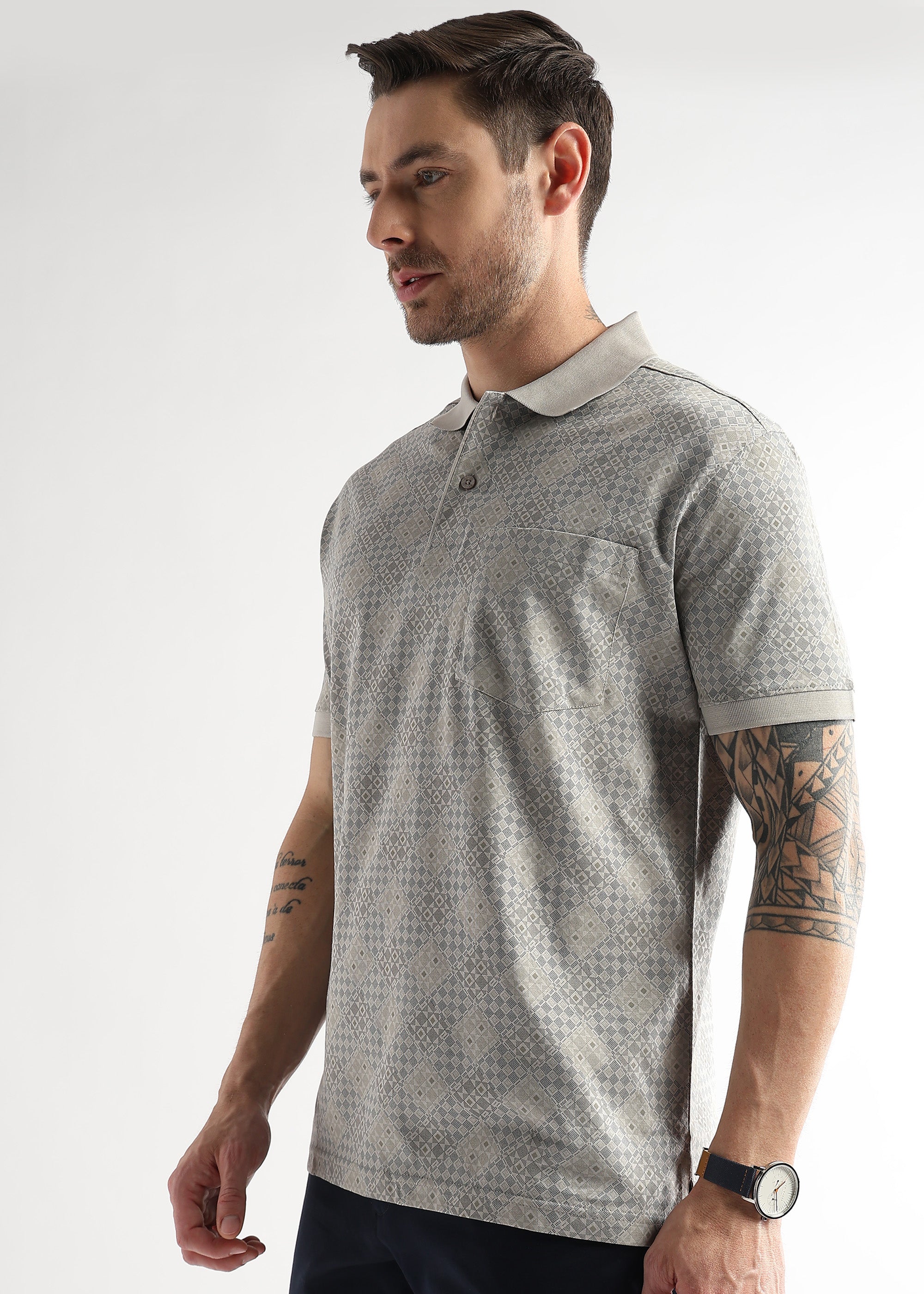 Pussywillow Gray Geometric Print Mercerized Polo