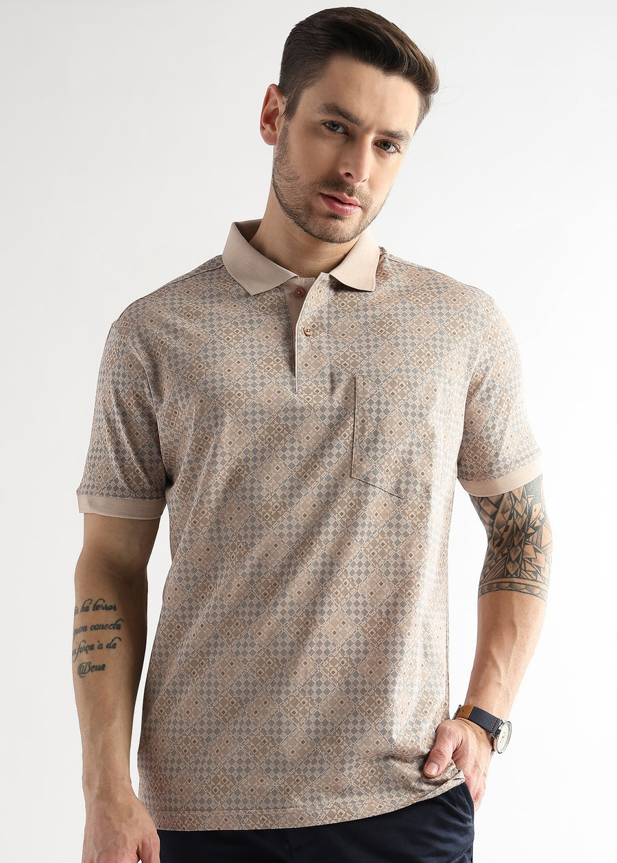 Silver Peony Geometric Print Mercerized Polo