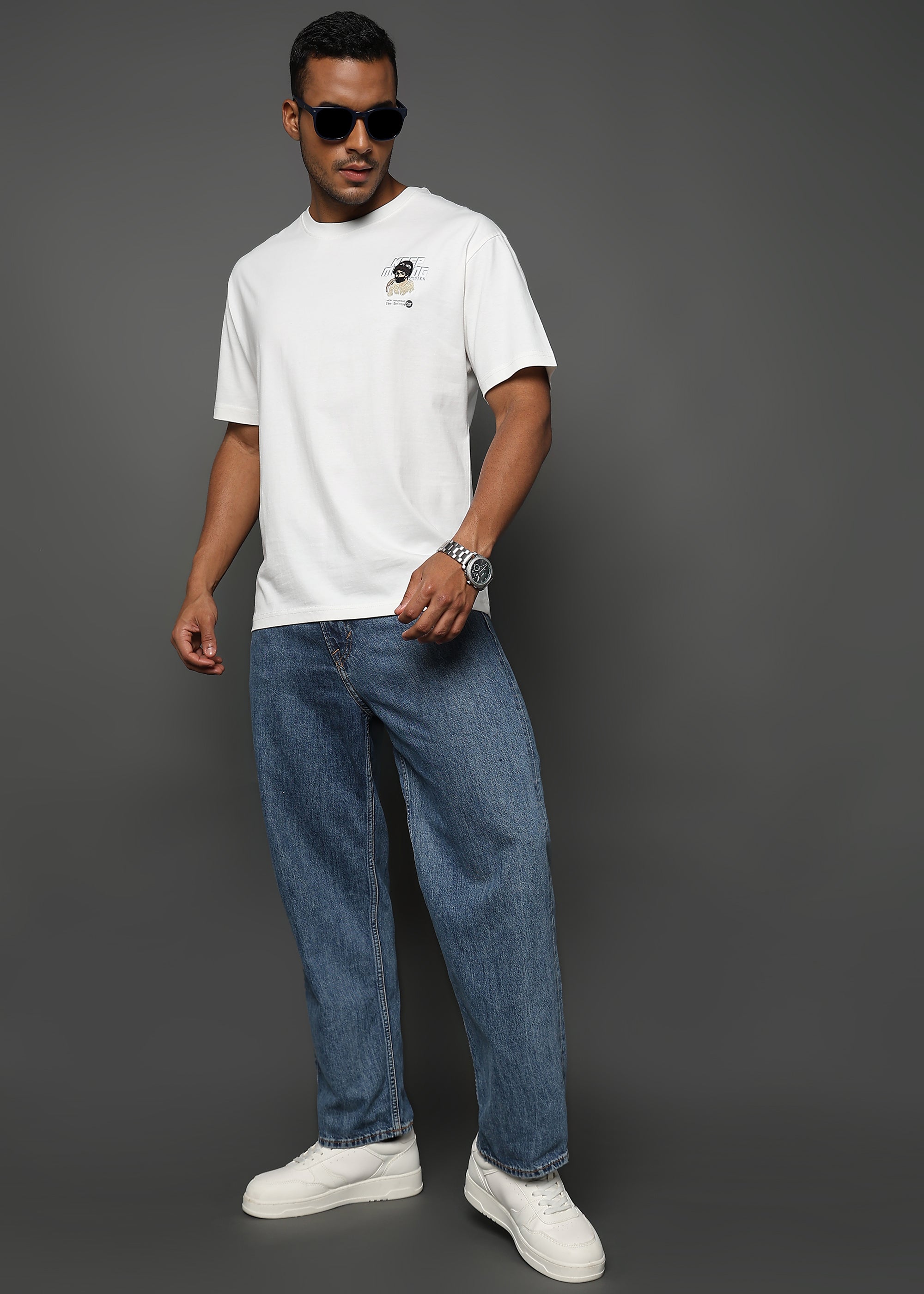 Level up your streetwear look with our Graphic Oversized T-Shirt, crafted from ultra-soft, breathable cotton for all-day comfort. Designed with an oversized fit that flatters all body types, this tee features a bold graphic print that becomes the focal point of your outfit. Perfect for any season, it's easy to style for a variety of looks. Pair it with ripped jeans and sneakers for an effortlessly look or go full streetwear with cargo pants and chunky sneakers for that on-trend urban aesthetic.