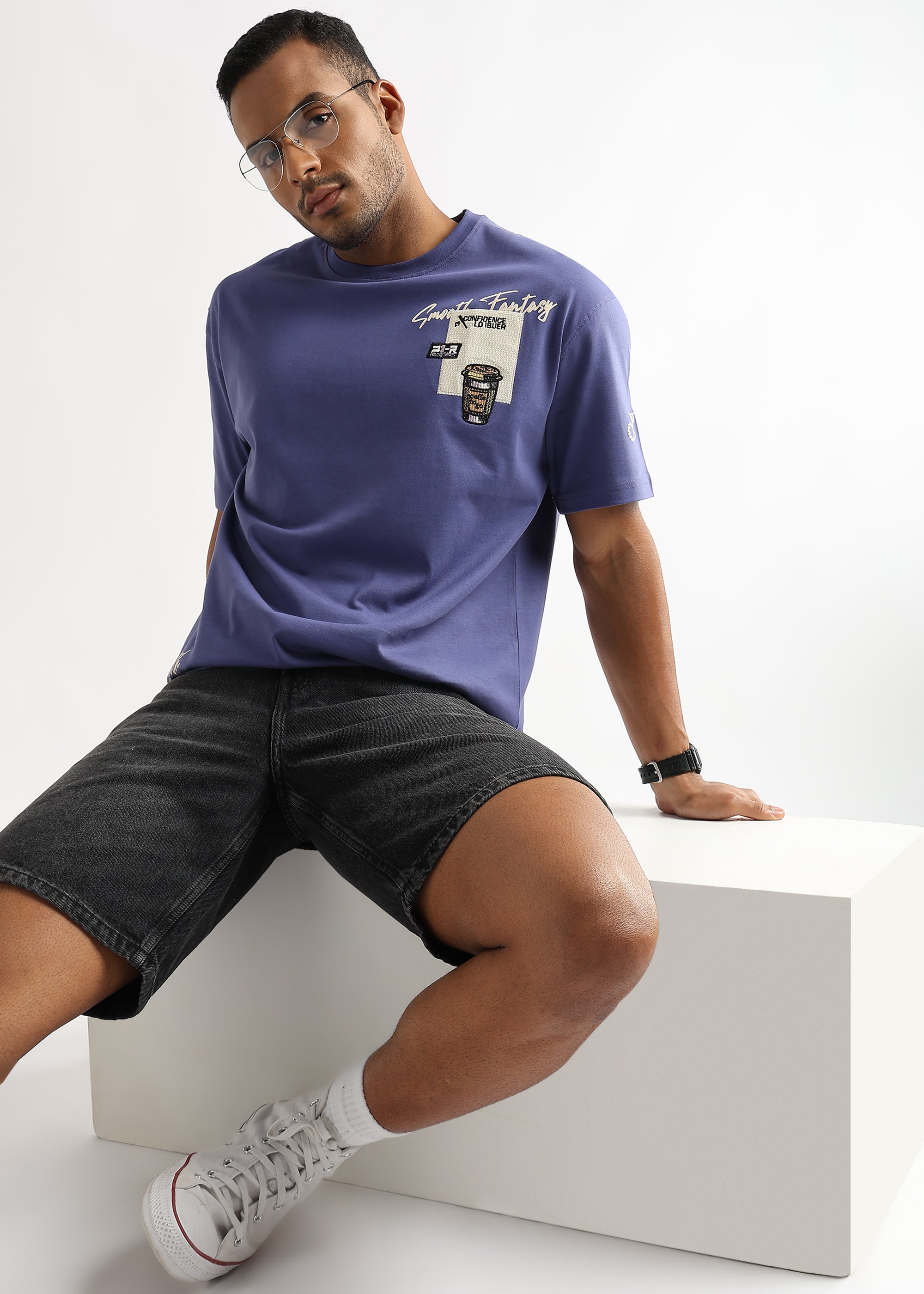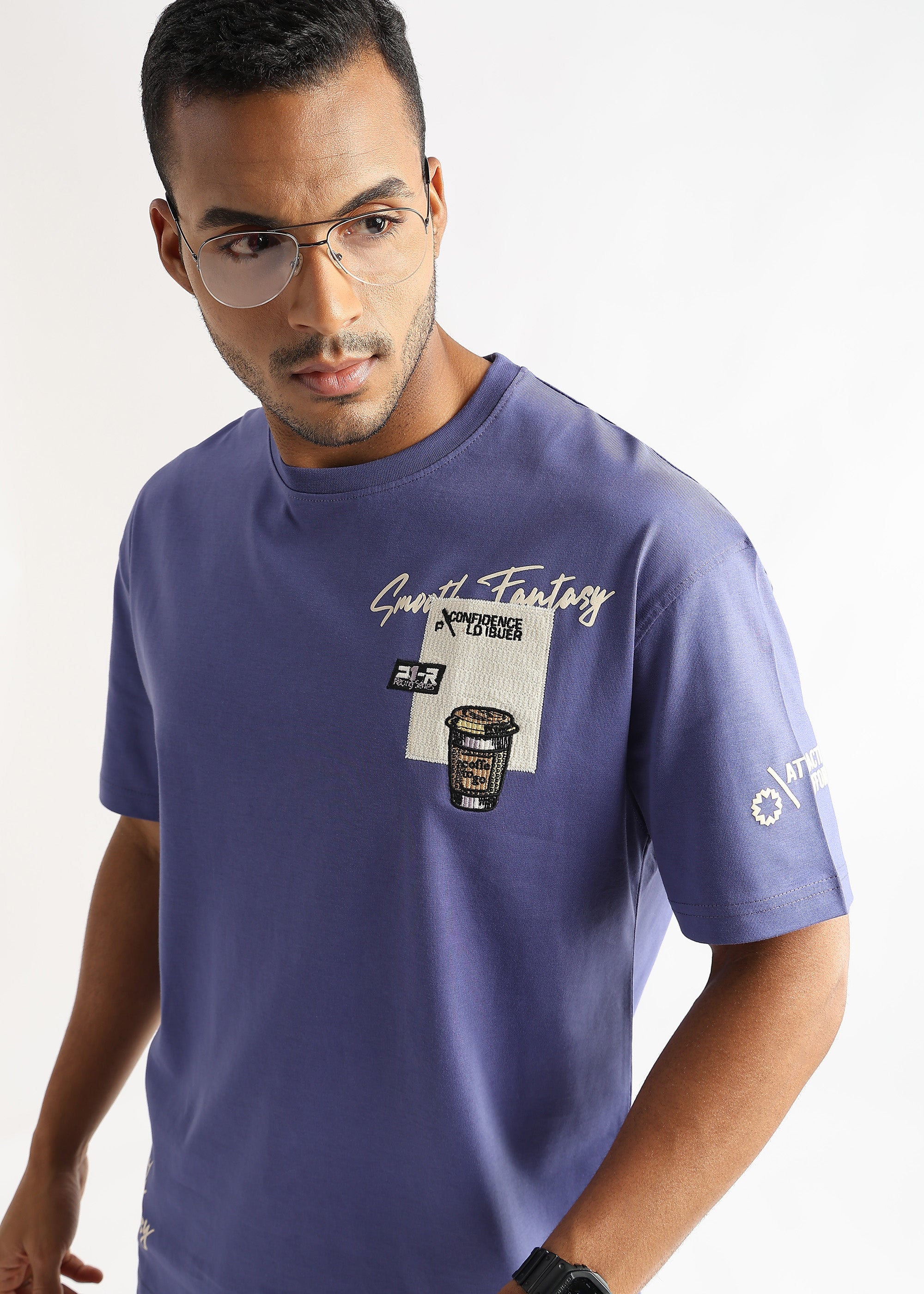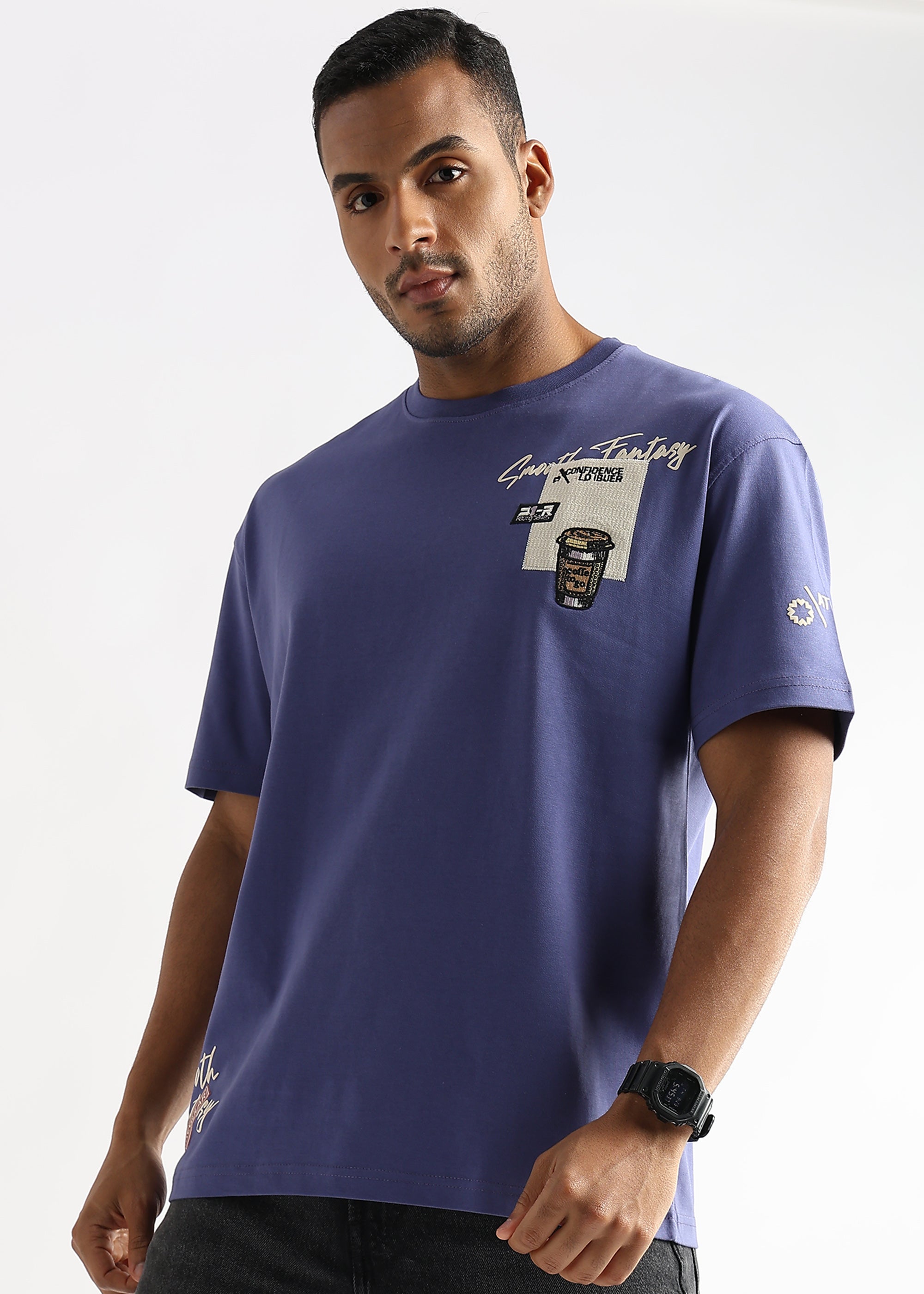 Twilight Purple Coffee Addict Graphic Oversized T shirt