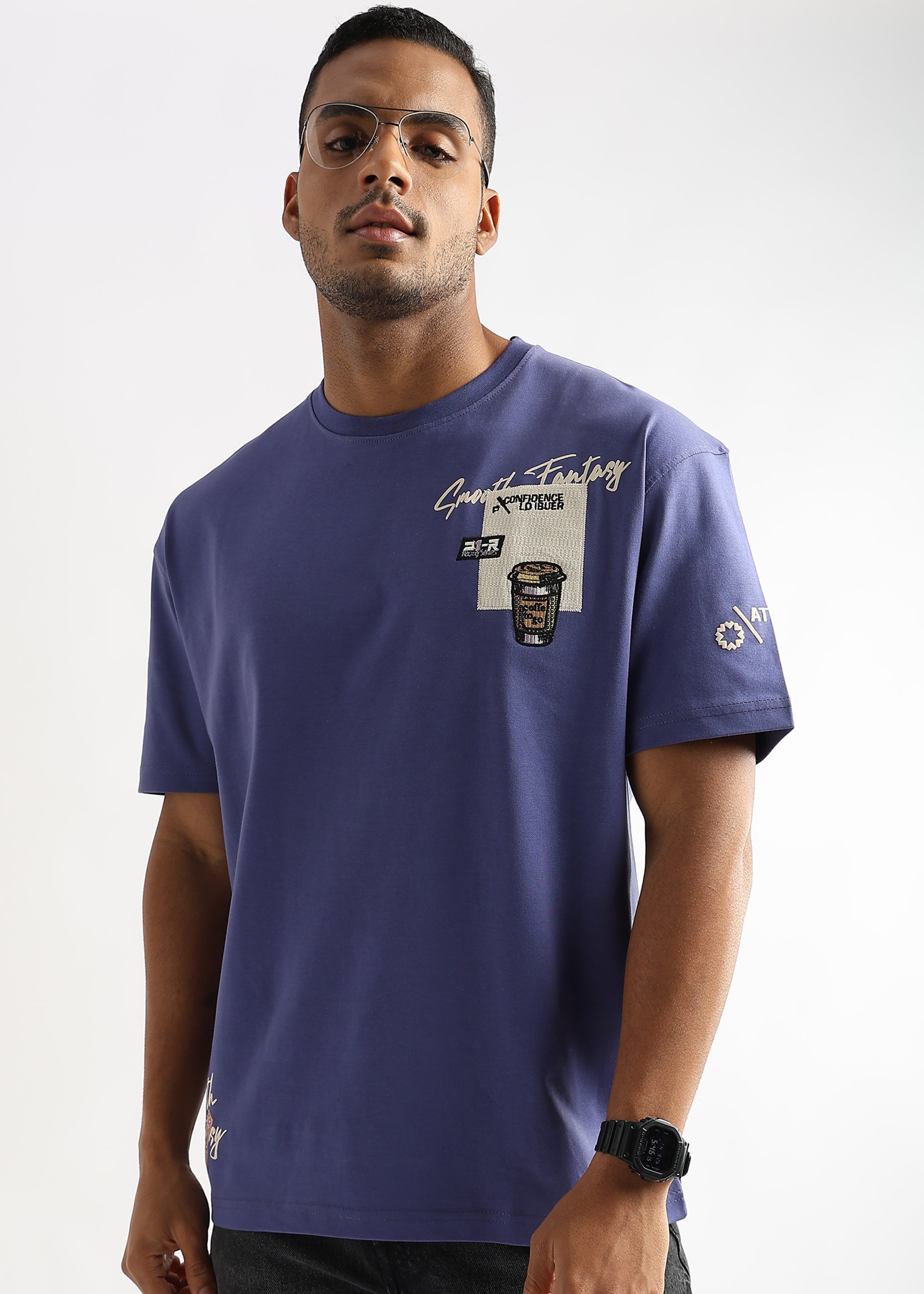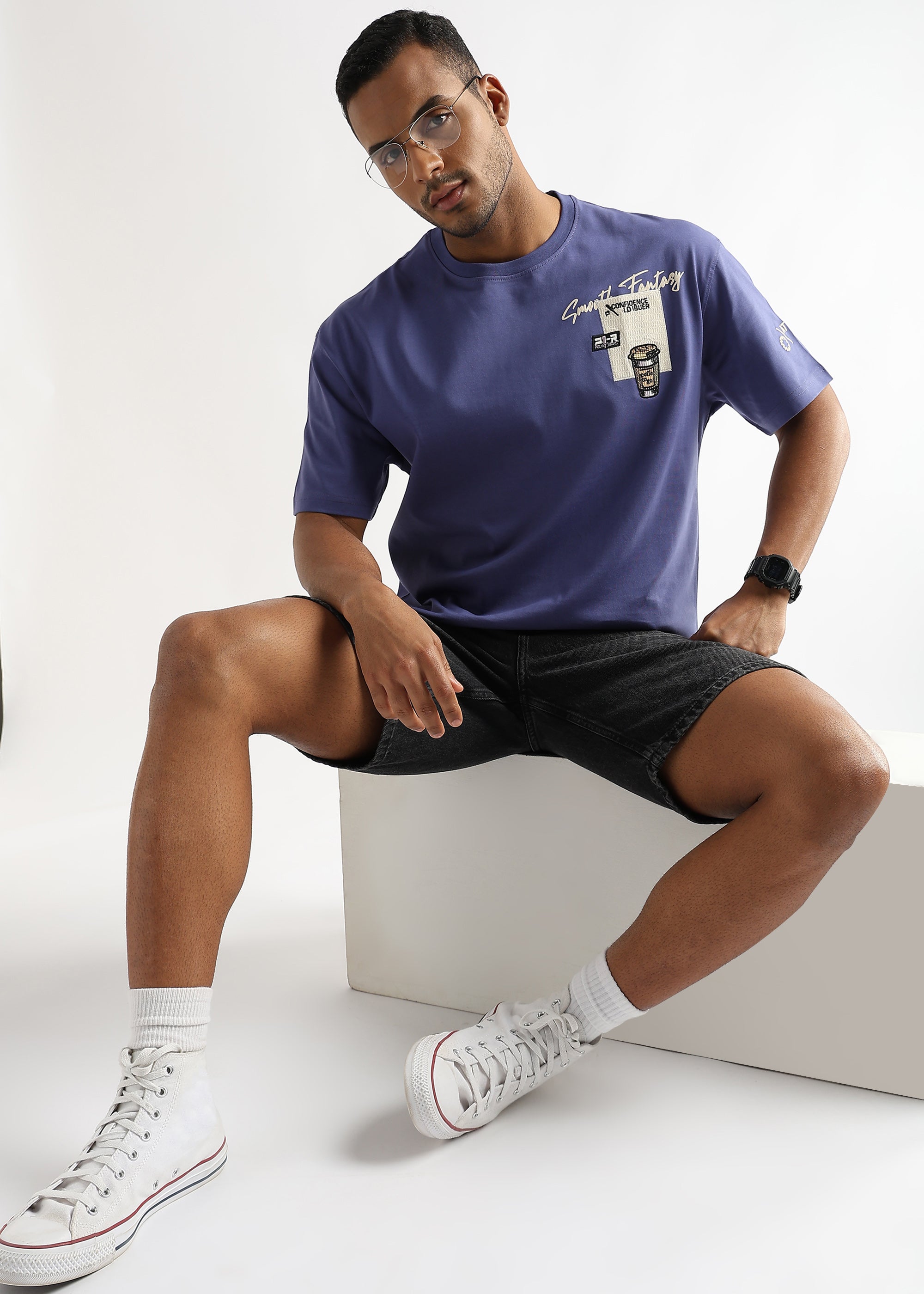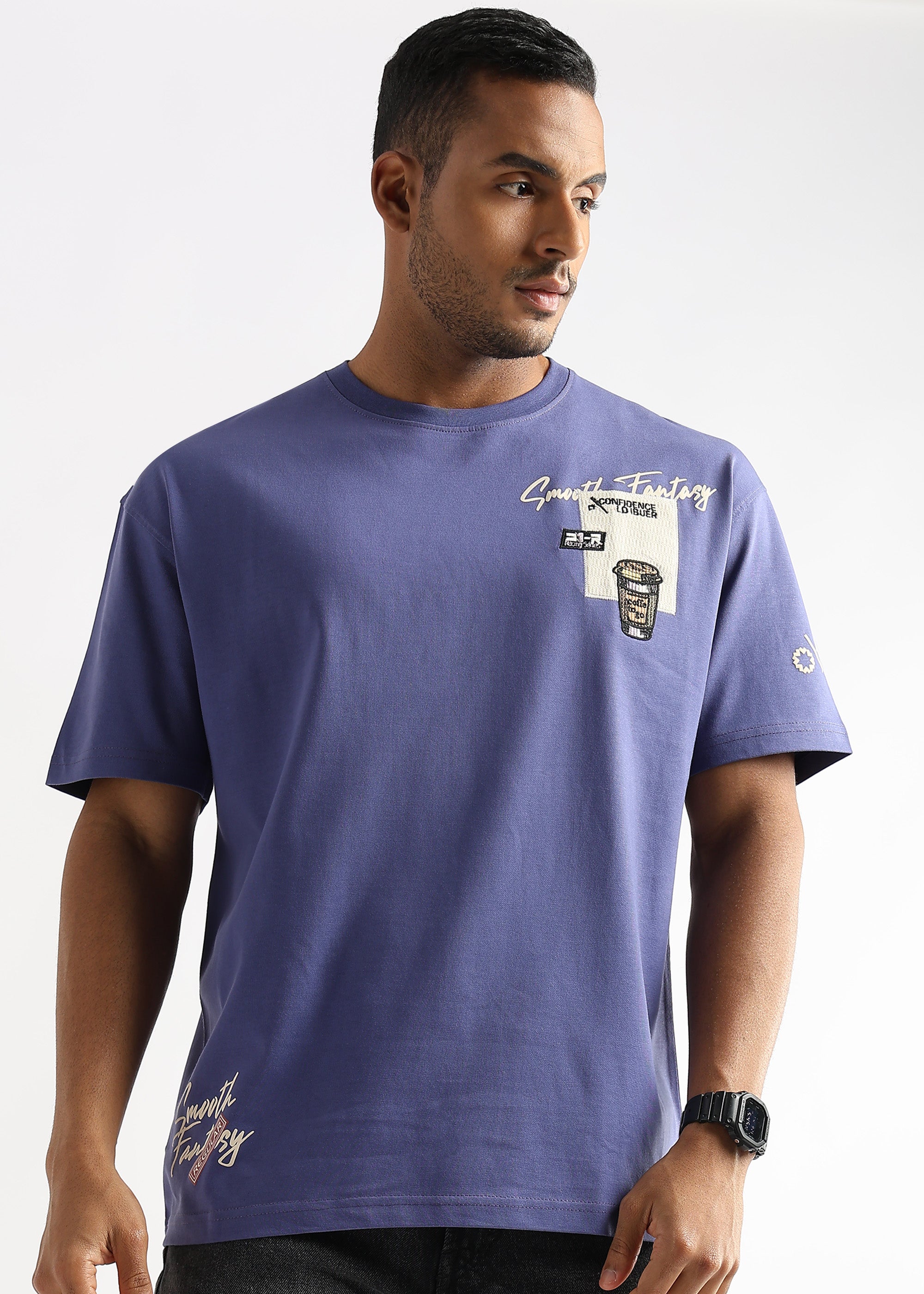 Twilight Purple Coffee Addict Graphic Oversized T shirt